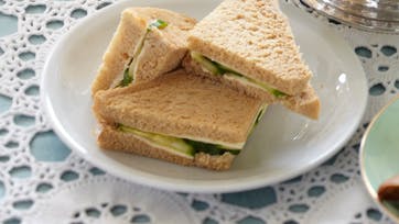 Skær agurken i skiver. Læg dem i en skål med salt og vineddike og bland godt. Lad dem trække 15 min., hæld dem i en sigte og dup dem tørre. Smør brødet. Læg 2 lag agurkeskiver på halvdelen af brødet og læg de andre brødskiver oven på. Pres let med hånden og skær skorpen af. Skær sandwichene i trekanter. Læg dem tæt sammen på et fad med et fugtigt viskestykke over og lad dem trække 1-2 timer.