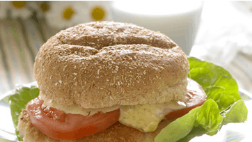 Lun bollerne, halver dem og fyld med salatblade, tomatskiver, fiskebøf og remoulade og server.