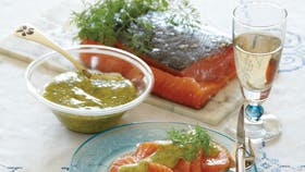 Tip: Efter gravningen kan lasken ligge 3-4 dage i køleskabet, men skrab krydderblandingen af, ellers bliver den for salt. Frosset laks kan graves, mens den endnu er halvt optøet.