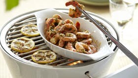 Tip: Rejerne kan også sættes på spid efter marinering og tilberedes direkte på grillen, men skal så kun have et par min.