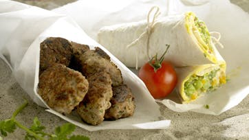 Skær radiser og peber småt ud. Mos halvdelen af ærterne med en gaffel og bland dem med de hele ærter, radiser, peber, rucola og cremefraiche. Smag til med wasabi, salt og peber. Læg fyldet på brødene og rul dem sammen. Del dem på midten og læg dem i plastpose.