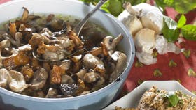 - Hvis det kniber med kantareller, så brug 10 g tørrede udblødte kantareller og 150 g østershatte.