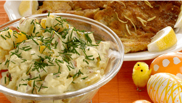 Kog kartofler og æg. Skær de marinerede sildefileter i mindre stykker og læg dem lagvis med æble i tern, æg i både og kartofler i tern. Rør dressingen sammen og hæld den over. Lad det trække så længe, du kan nå. Rør først rundt ved servering. Pynt med hakket purløg.