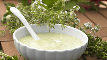 Miks krydderurter, hvidløg, olie og salt i blender til en glat, grøn puré. Bland mayonnaise og yoghurt og tilsæt urterne. Rør det sammen og smag til med citronsaft, en smule sukker, salt og peber.