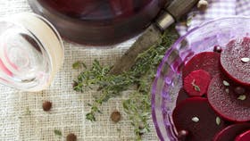 Kog rødbederne møre i letsaltet vand på ca. ¾ time. Hæld vandet fra og skyl rødbederne med koldt vand. Gnid skindet af, brug engangshandsker, hvis du vil skåne hænderne for farve, og skær rødbederne i skiver. Læg dem i et skoldet glas. Kog eddikelagen sammen og hæld den over rødbederne. Luk glasset og lad rødbederne trække 1-2 uger.