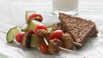 Ristede kødboller med høstgrønt og yoghurt