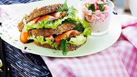 Dobbelt sandwich med gravet laks