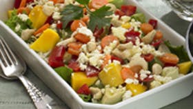 Vend dem i resten til sidst og drys med smuldret feta og ristede cashewnødder.