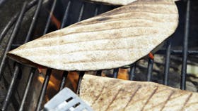 Skær mozzarellaen i tynde skiver og skyl spinaten. Skær snackpeberen i tynde strimler og kartoflen i papirtynde skiver. Fordel mozzarella, spinat, snackpeber og kartoffel på den ene halvdel af hver tortilla og fold den anden halvdel over. Pensl tortillaerne med olie og grill dem 4-5 min. på hver side med god afstand til kullene, til de er gyldne. Skær dem i små trekanter og server dem som en lille appetizer eller som tilbehør til hovedretten.
