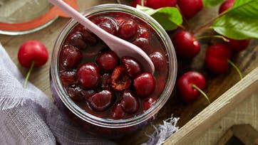 Skyl og udsten kirsebærrene og skrab vaniljekornene fri at vaniljestangen. Bland vaniljekornene med sukkeret og læg kirsebærrene lagvist med sukker. Tilsæt Atamon og lad blandingen trække på køl i 4-5 dage, til sukkeret er smeltet. Opbevar kirsebærrene på køl.