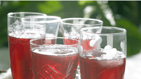 Kog rabarber og ribs op med vand og Nonoxal (modvirker oxalsyre, som findes i friske rabarber) og lad det koge under låg i 10 min. Hæld saften gennem et rent klæde og kasser rabarberkødet. Kog saften op med rørsukker og skum den for urenheder. Tilsæt Atamon og hæld saften på skoldede flasker. Server saften blandet med vand i forholdet 1:4.