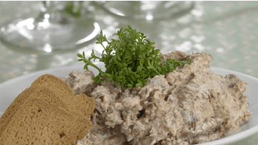 Server med færdige toast eller fyld dippen i små portionsskaller sammen med rucolasalat.