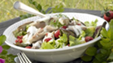 Salat med røget makrel, hindbær og kartofler