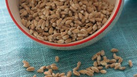 Kom kernerne i en gryde og overhæld dem med vandet. Tilsæt salt, lad kornene koge i 10 min. og lad dem herefter afdryppe i en sigte. Fordel dem på en plade med bagepapir og bag kernerne i ovnen ved 150° varmluft i 20 min., til de er helt tørre.