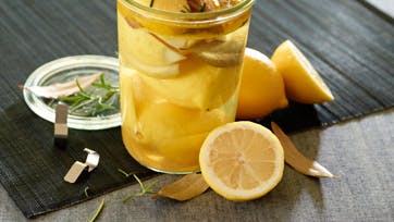 Et glas med saltede citroner, der kan holde sig et års tid i køleskabet, er godt at have på lager. De kan bruges som tilbehør til stegt fisk og kød i stedet for citronsaft, som krydderi i ris- og pastaretter, grønsagsgryder og supper, ja, faktisk i alt undtagen desserter. Saltet fjerner bitterstofferne, så hele citronen kan spises. Lagen er god i salatdressinger.