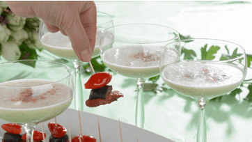 Hak fennikel og løg. Sauter i olie og drys med salt og peber. Hæld suppe ved og kog med timian, til det er mørt. Tag timianen op og kog suppen lidt ind. Blend fuldstændig og jævn med fløde. Afkøl og server i glas med drys af paprika og hakket kørvel.