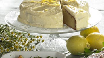 Rør smør og sukker blødt. Rør et æg i ad gangen. Kom citronskal ved og sigt mel og bagepulver i dejen. Fold det i sammen med cremefraichen Kom dejen i en 23 cm smurt springform og bag ved 160° i 50-60 min.
