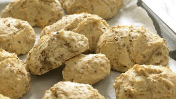 Rør gæren ud i vandet og rør 5-kornsflager og kerner, salt og sukker i. Tilsæt melet og rør, til dejen er ensartet, men klistret. Dæk skålen til og stil dejen i køleskabet i 8-12 timer, f.eks. natten over. Sæt dejen i 12 klatter med en våd ske på en bageplade med bagepapir. Drys med lidt mel, stil brødene i ovnen ved 225° og bag dem i 8 min. Sænk temperaturen til 180° og lad dem bage videre i 15 min.