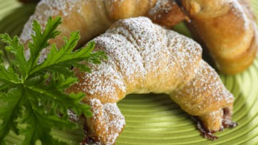 Åbn dåsen efter anvisningen. Fold dejen ud på bordet, og del den ved perforeringerne. Fordel marmeladen på de 6 trekanter. Rul trekanterne sammen fra den brede side, og bøj dem som et C. Bag dem midt i ovnen ved 225° ca. 8 min. Sigt flormelis over, og server dem lune.