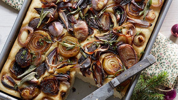 Lad brødet hæve tildækket i ½ time og lav løgene klar imens.