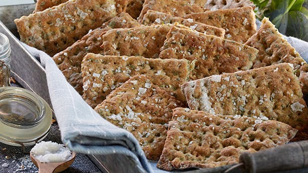 Bag knækbrødene i 10 min. ved 250° og lad dem afkøle på en rist.