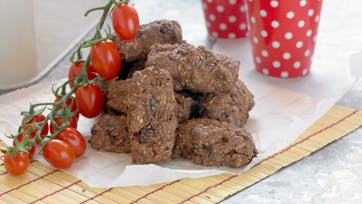 Bland dejen efter anvisningen på pakken, mos bananerne og kom dem i dejen sammen med resten af ingredienserne. Form 12-20 små rugbrød og bag dem ca. 25 min. ved 200°.