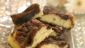 Smørret hakkes ud i mel og salt. Mælken lunes og gæren opløses heri. Røres i dejen sammen med ægget. Æltes 5 min. Hæver 1 time. Slå dejen ned. Lægges i en smurt form (springform eller lille bradepande). Smør, kanel og puddersukker røres blødt og smøres på dejen, hvori der er trykket fordybninger. Bages ved 200° i 20 min. Spises lun eller kold