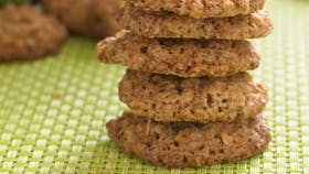 Bland ymerdrys, mel, havregryn, sukker, kanel og natron og rør æg og smeltet smør i. Sæt dejen i små toppe på en bageplade beklædt med bagepapir og bag dem ved 200° i 12 min. Lad kagerne afkøle på pladen og opbevar dem i en kagedåse, så de bevarer sprødheden.