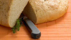 Rør vand og gær sammen. Tilsæt salt, sukker, durum og det meste af melet. Ælt dejen godt med så meget mel, den kan tage, uden at den bliver for fast. Ælt, til dejen er blank og smidig. Gnid skålen med lidt olie. Vend dejen rundt i skålen og læg et fugtigt klæde over. Lad den hæve lunt 3 timer. Tag dejen ud på et meldrysset bord. Klap dejen flad med hænderne og fold den over uden at trække for meget i den. Fold enderne ind under dejen, så brødet bliver rundt. Læg det på plade med bagepapir og lad det efterhæve lunt tildækket til dobbelt størrelse. Pensl brødet med olie og drys med krydderier, klap dem lidt ned i overfladen, så de ikke falder af. Bag det 12 min. på nederste rille ved 225° og dernæst ca. 20 min. ved 190°.