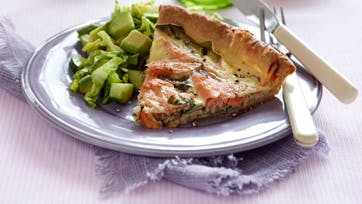 Tærte med spinat, broccoli og røget laks