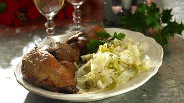 Fedtet koges igennem, sies og hældes over, så det dækker helt. Stilles i køleskabet og trækker 2-3 uger (kan spises tidligere, men trækketiden fremmer smagen). Når de skal serveres, skrabes fedtet af (kan bruges til at stege kartofler i) og de steges sprøde i ovnen ved 225° i 15- 20 min. Serveres med andefedtstegte kartofler og surkål.