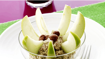 Skær æblet i både og dryp med lidt citronsaft, så de ikke bliver brune. Server dippen til æblerne.