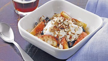 DDV-opskrift: Bagt æble og svesker med kokos og mandler