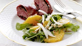 DDV-opskrift: Berberiand med appelsinsalat og bagte rødder