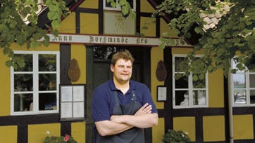 Svinekammen rulles i husholdningsfilm og pocheres let i saltet vand i 25 min. Herefter trækkes gryden til side, og kødet holdes lunt indtil servering. Ærterne koges i fond og fløde, til de er møre, blendes så med smør til en lind puré og hældes tilbage i gryden. Løget skæres i så tynde skiver som muligt, som saltes let i ca. 2 timer, til de er "bløde", herefter vendes de i mel og friteres, til de er sprøde.