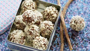 Prøv disse små julegodter med figner, dadler, lakrids og mandler.