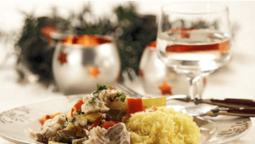 Skyl risene og kog dem i vandet sammen med salt og safran i 12 min. Skær fiskefileten i 6 stykker. Skær løg, æbler, porrer og peberfrugter i tern og hak hvidløg og chili fint. Varm kokosmælken op i en gryde og tilsæt limesaft, hvidløg, chili, salt og peber. Læg fiskestykkerne i gryden sammen med løg, æblestykker, porrer og peberfrugter. Lad retten småsimre under låg i 15 min. Tag risene af varmen, rør dem igennem, lad dem trække under låg i 7 min. og server.
