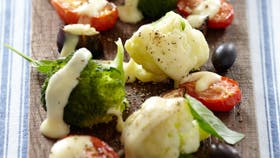 Grønsager med ostesovs