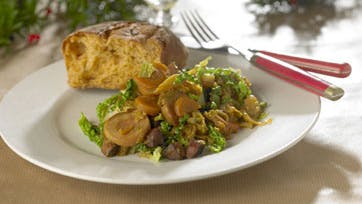 Svits chorizoen i olien i en tykbundet gryde. Lad karry og løg svitse med i 1 min., og tilsæt så halvdelen af savoy-kålen sammen med gulerødder og kartofler. Hæld bouillonen ved, og lad det småkoge under låg i 10 min. Tilsæt medisterstykkerne og resten af kålen, og lad det simre i yderligere 5 min. Smag til med salt og peber, og server med et stykke groft brød.