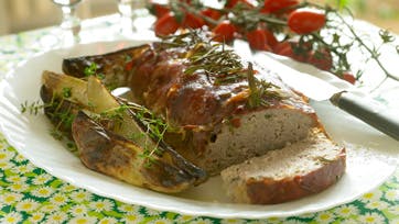 Ælt kødet med æg, løg, salt, peber, allehånde og mosede eller finthakkede ansjoser. Form et farsbrød, læg det i et ovnfast fad og omvikl det med skinkeskiver og snor. Stop kviste af timian og laurbær under snoren og kom et par flager af tyndt skåret citronskal ved.