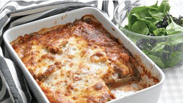 Brun skinkestrimlerne i olie sammen med paprika. Hak hvidløg og forårsløg og tilsæt dem sammen med bønner, flåede tomater, mælk, salt og peber. Lad sovsen koge op, bræk lasagnepladerne i mindre stykker og bland dem i sovsen. Hæld sovs med lasagneplader i et ovnfast fad og dæk toppen med mozzarella. Bag skinkefadet i ovnen ved 175° i 25 min., skru op til 200° og giv den yderligere 10 min.