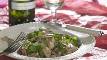 Skær brislerne i store tern og steg dem i smørret, til de er let brunede. Tag dem op og kom løg, hvidløg og svampe i panden. Når de er godt stegte (ca. 10 min.), drysses med mel og spædes med bouillon og vin. Lad det koge 3 min. Der rundes med piskefløde og smages til med salt og peber. Brislerne lægges i stuvningen, som koges igennem med masser af hakket persille. Serveres med ristet brød og citron. Hertil drikkes gerne mere af den tørre sauvignon blanc, eller hvis det skal være endnu mere raffineret, så en Pessac Léognan (et lille distrikt syd for Bordeaux by tæt på Graves).