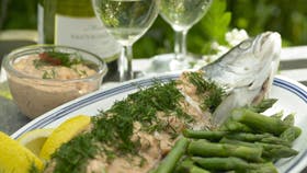 1 bundgarnslaks på ca. 1½ kg el. 1 lakseside på ca. 1 kg