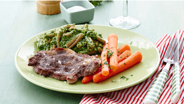 Fremgangsmåde til koteletter med ærtecreme og pasta
