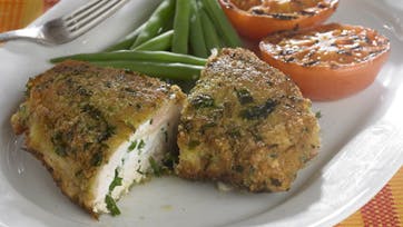 Blend brød og persille til en grøn rasp. Vend kødet først i mel, så i sammenpisket æg og så i grøn rasp.