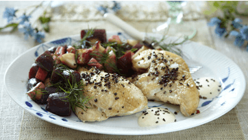 Kylling med rødbeder i chokoladedressing