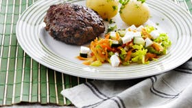 Karbonader med smørdampede grønsager