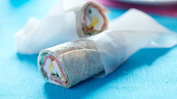 Lun pandekagerne let. Kog æggene, hvis de ikke er kogt. Pil dem og skær i skiver. Smør lidt flødeost på pandekagerne og læg skiver af laks, æg, og agurk på langs samt lidt krydderurter og drys med salt og peber. Rul sammen, læg koldt og server med tomatsalat.