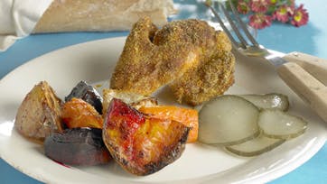 Majspaneret kylling med rodfrugter