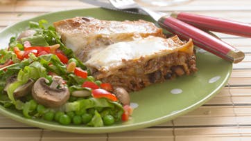 Bag lasagnen ved 200° i 45 min. og server med brød og grøn salat.